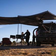 - Freestanding awning with heavy duty support arms make deployment easy